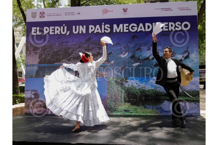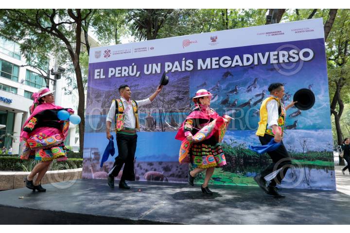 CIUDAD DE MÉXICO, 03JULIO2024.- Con bailes típicos peruanos se inauguró la exposición fotográfica “El Perú. Un país megadiverso” que se encuentra en Avenida Paseo de la Reforma. FOTO: ALICE MORITZ/CUARTOSCURO.COM