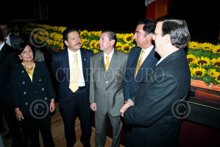 MÉXICO, D.F., 03DICIEMBRE2008.-La gobernadora de Zacatecas Amaila Garcia, Carlos Navarrete, el gobernador de Guerrero, Zeferino Torreblanca, el gobernador de Bajacalifornia Sur, Narciso Agundes Montaño y Marcelo Ebrard Jefe de Gobierno Capitalino, durante una ponencia del presidente Nacional del PRD, que se llamo Reformar es volver a Creer. que se realizo en el Teatro de la Ciudad FOTO: RICARDO CASTELAN/CUARTOSCURO.COM