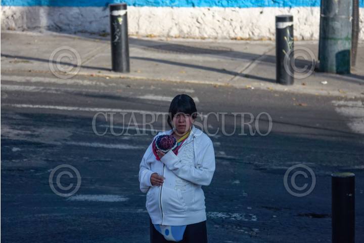 Mujer utiliza gorro de estambre como protección ante las bajas temperaturas.