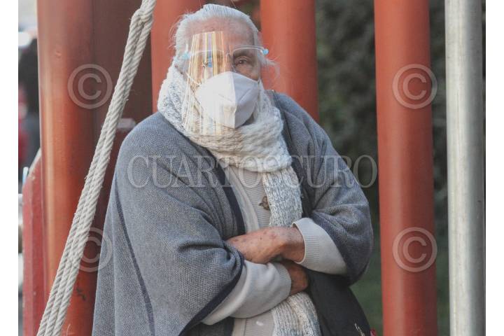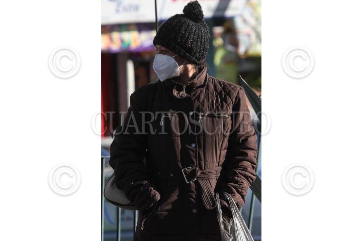 Una mujer mayor se abriga con bufanda para mitigar el frío.