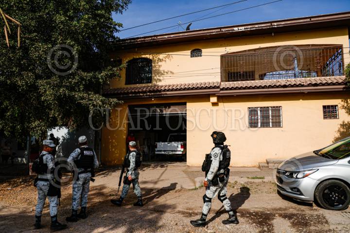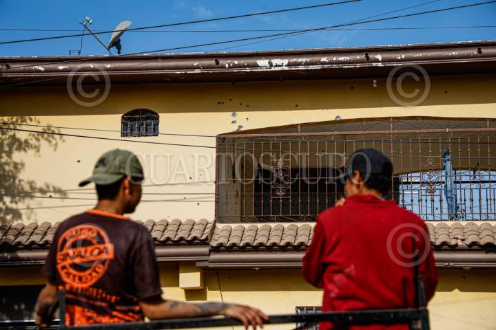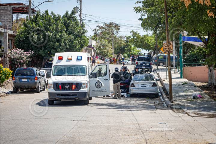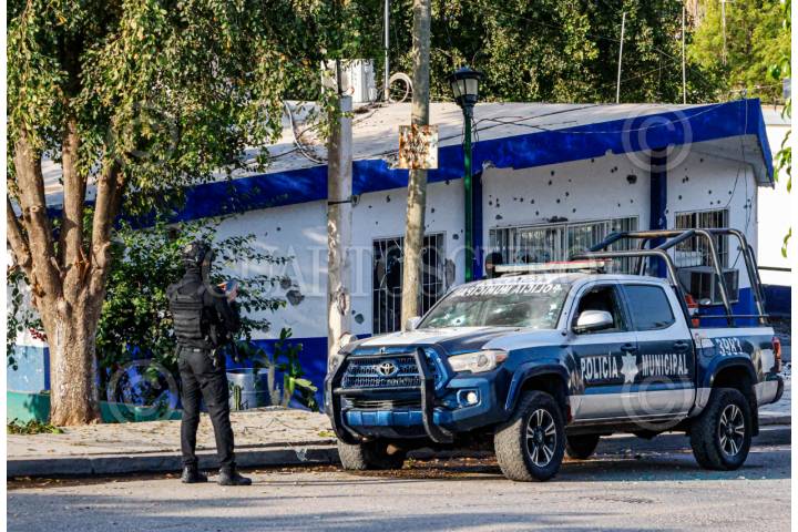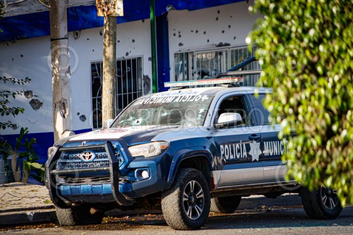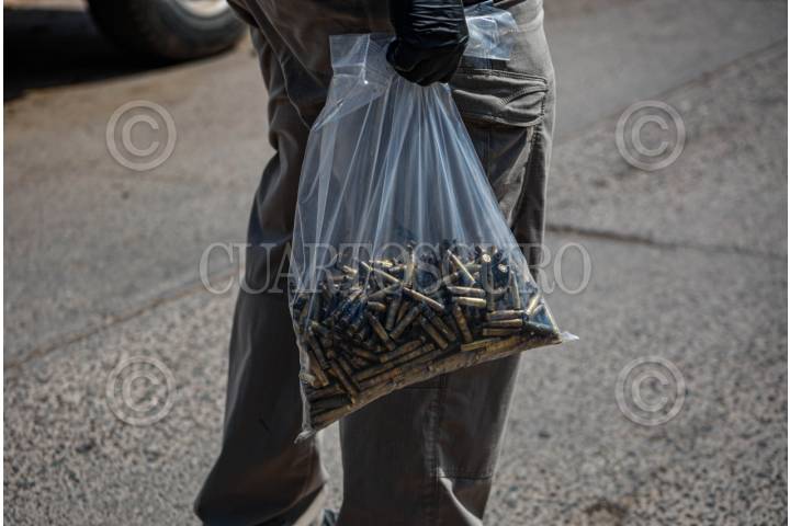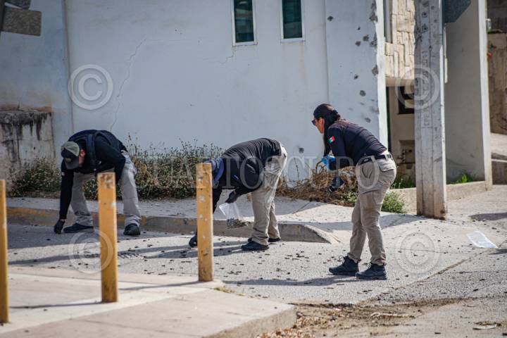 CULIACÁN, SINALOA, 15ABRIL2025.- Un ataque armado contra agentes de la Policía Municipal en la delegación de la Secretaría de Seguridad Pública y Tránsito Municipal de la colonia Los Huizaches dejó como saldo preliminar un oficial fallecido y otro herido, movilizando a corporaciones policíacas y a la Secretaría de la Defensa Nacional. Los hechos ocurrieron alrededor de las 6:40 de la mañana de este martes 15 de abril, en la caseta de policía ubicada en la calle Mina Plomosa, entre Liberalismo y Miguel de la Madrid Hurtado, cerca de las canchas deportivas del sector. El agente caído, identificado como José Adolfo, fue encontrado sin vida dentro de un Honda Civic gris, modelo antiguo y sin placas, estacionado a unos 10 metros de la base policial. El oficial herido, identificado como Cristian, permanece bajo atención médica, mientras que en el lugar del ataque se recolectaron más de mil casquillos, evidenciando la magnitud del atentado. FOTO: JOSÉ BETANZOZ ZÁRATE/CUARTOSCURO.COM