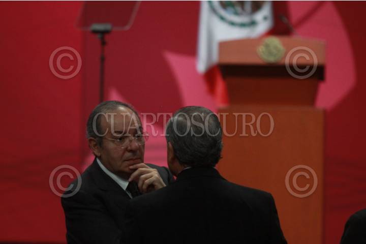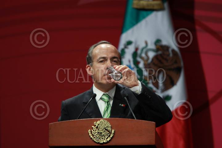 MÉXICO, D.F., 15JULIO2009.- El presidente Felipe Calderón durante la comida de clausura del VII Congreso Internacional de la Industria Automotriz que se realizo en el Centro Banamex. FOTO: RODOLFO ANGULO/CUARTOSCURO.COM