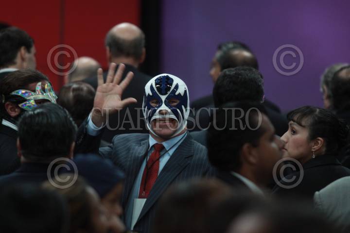 MÉXICO, D.F., 25NOVIEMBRE2009.-El luchador Atlantis, acudió al" Primer encuentro de un México sin pobreza, juntos podemos superarla " , encabezado por el presidente de México Felipe Calderon Hinojosa, realizado en el cenro de exposiciones Banamex. FOTO: SÁSHENKA GUTIÉRREZ/CUARTOSCURO.COM