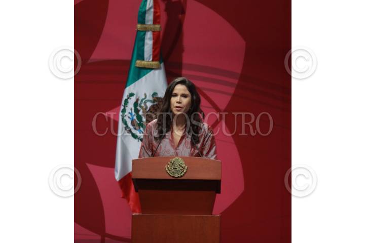 MÉXICO, D.F., 25NOVIEMBRE2009.- Paola Rojas Hinojosa conductora del noticiero vespertino a las tres durante el " Primer encuentro de un México sin pobreza, juntos podemos superarla " , encabezado por el presidente de México Felipe Calderon Hinojosa, realizado en el cenro de exposiciones Banamex. FOTO: SÁSHENKA GUTIÉRREZ/CUARTOSCURO.COM