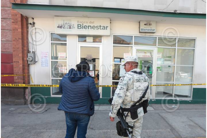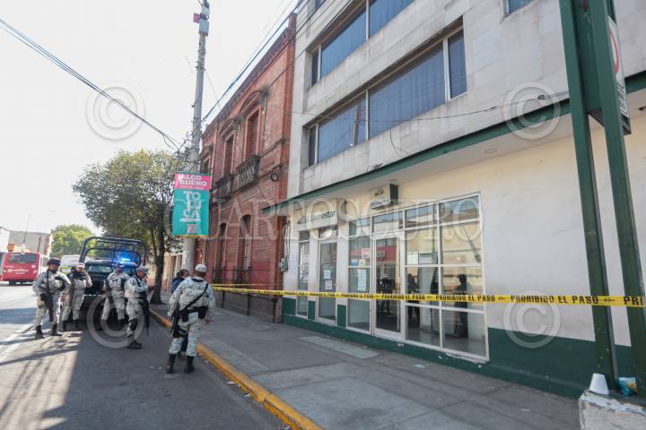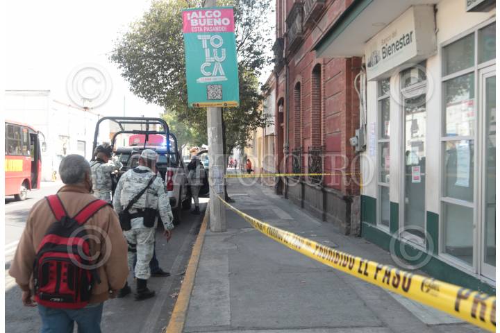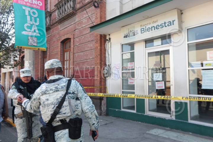 Roban Banco del Bienestar en Toluca los asaltantes rompieron un vidrio y forzaron una chapa, la Guardia Nacional resguardó el lugar.