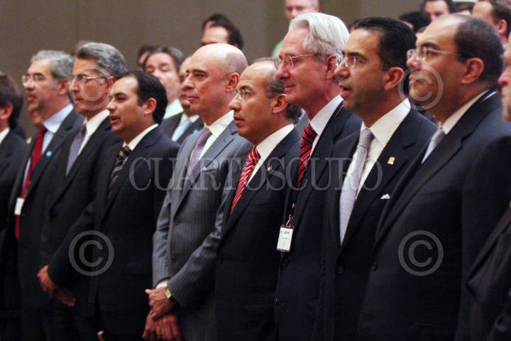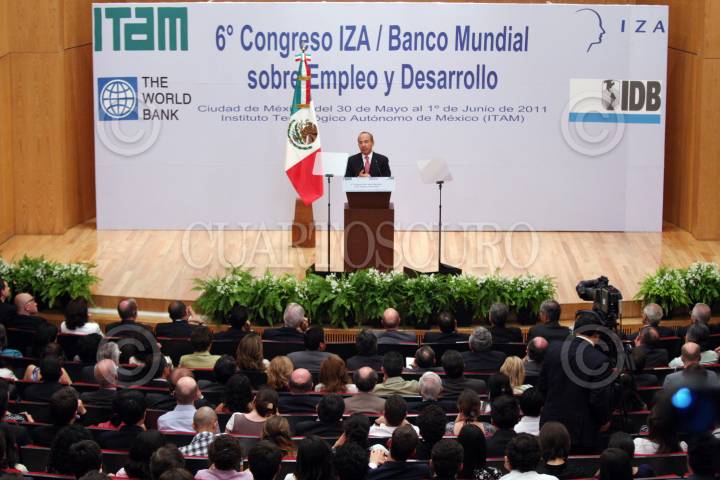 MÉXICO, D.F., 30MAYO2011.- Felipe Calderón Calderón Hinojosa, presidente de México, encabezó la 6ª Conferencia sobre Empleo y Desarrollo de Iza-World Bank, que se desarrolló en el Instituto Autónomo de México. Al presidente lo acompañaron miembros de su gabinete. FOTO: FRANCISCO SANTOS/CUARTOSCURO.COM