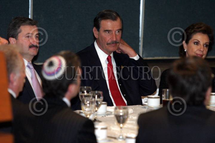 MEXICO, D.F., 23ENERO2006.- Bernardo Bank, presidente del Centro Deportivo Israelita, Vicente Fox Quesada, Presidente de la República y Marta Sahagún, esposa del mandatario, durante una comida con los miembros de la comunidad judía en el Centro Deportivo Israelita. FOTO: Moisés Pablo/CUARTOSCURO.COM