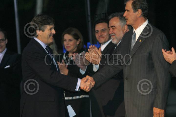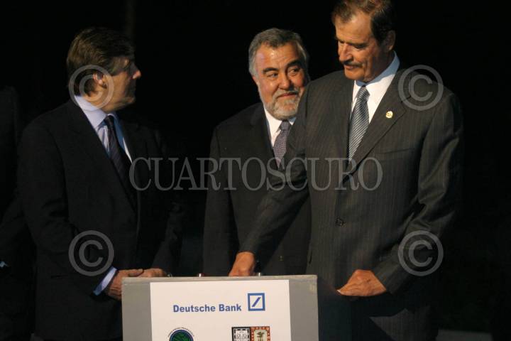 MÉXICO, D.F. 23FEBRERO2006.- Josef Ackermann, representante de la junta de directores de Dutsche Bank y el presidente Vicente Fox durante la inauguración del espejo de agua del bosque de Chapultepec. FOTO:Miriam Sánchez/CUARTOSCURO.COM