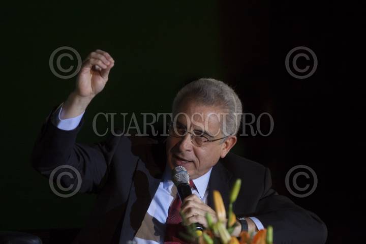 MÉXICO, D.F., 07NOVIEMBRE2012.- Alfredo Elías Ayub, ex-director de la Comisión Federal de Electricidad, durante su participación en un foro en el marco de la primera sesión plenaria del consejo nacional del Grupo Financiero Banorte-Ixe. El día de ayer el Jefe de Ejecutivo Felipe Calderón inauguró la presa de "La Yesca", la cual lleva su nombre. FOTO: MOISÉS PABLO /CUARTOSCURO.COM