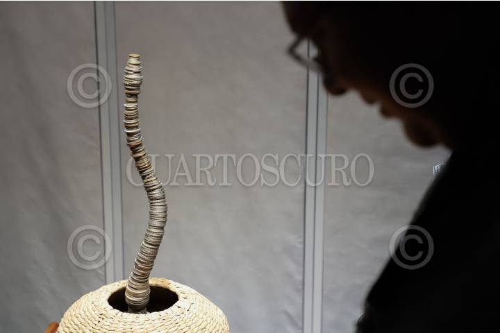 CIUDAD DE MÉXICO, 28NOVIEMBRE2024.- Una serpiente hecha de monedas, es parte de la exposición Territorio Estable, la cual se encuentra en el Museo del Banco de México. FOTO: DANIEL AUGUSTO/ CUARTOSCURO.COM