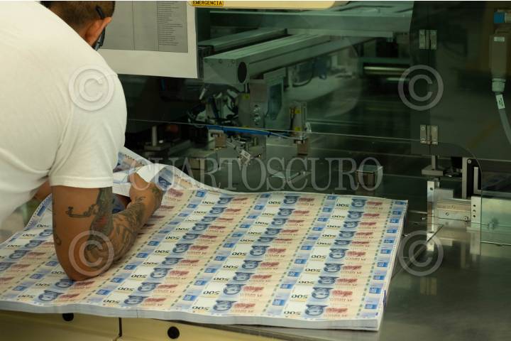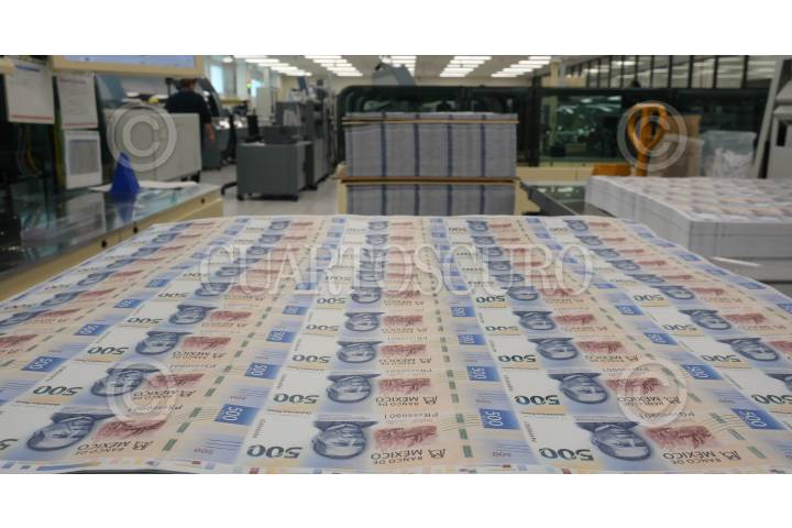 CIUDAD DE MÉXICO, 15OCTUBRE2023.- México cuenta con dos fábricas en el país, una ubicada en el estado de Jalisco inaugurada en el 2018 y otra en la Ciudad de México inaugurada en 1969. La denominación que se va imprimiendo depende mucho de la demanda de los billetes entre los mexicanos, la aproximación del BANXICO es que es de 40 billetes por ciudadano en circulación. Lo materiales con los que son fabricados los billetes en el país dependiendo la denominación es; polímero y algodón y estos materiales son importados de multinacionales europeas principalmente y certificadas por el Banco. FOTO: ISABEL MATEOS/CUARTOSCURO.COM