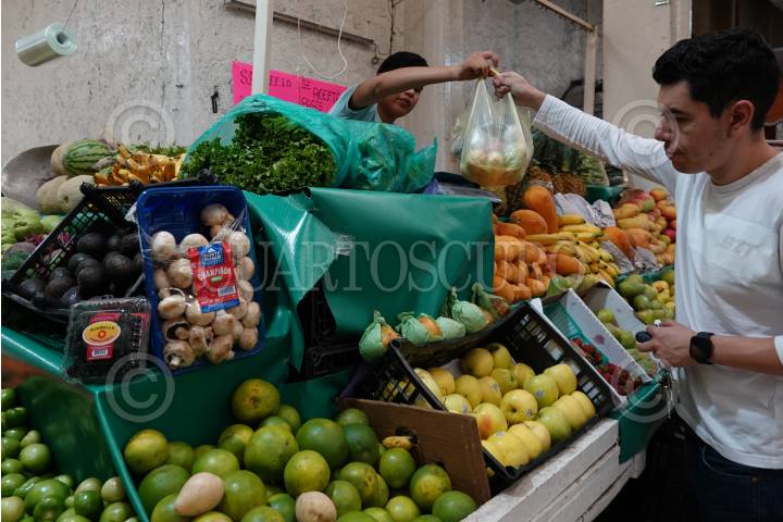 CIUDAD DE MÉXICO, 08AGOSTO2024.- Locatarios de la ciudad han reportado el incremento en los precios de la canasta básica en los últimos meses y aún mayor al terminar el mes de julio. Lo anterior, según cifras del Instituto Nacional de Estadística y Geografía (INEGI) se debe a la inflación general anual que se sitúa en 5.57%, un aumento del 1.05% respecto al mes de junio. Los productos con incremento son: jitomate, papa, aguacate, cebolla y el limón ha comenzado a subir. Por el contrario, el día de hoy la Junta de Gobierno del Banco de México decidió disminuir en 25 puntos base el objetivo para la tasa de interés Interbancaria a un nivel de 10.75 por ciento, sin embargo subieron su expectativa de inflación que colocan en un promedio de 4.4% para el último trimestre de este año, que es superior al 4% que proyectaron en el mes de junio. FOTO: GALO CAÑAS/CUATORSCURO.COM