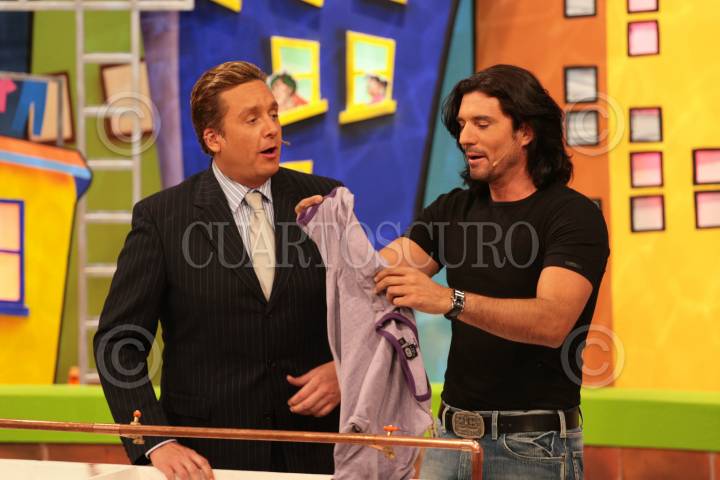 MÉXICO D.F. 20MARZO2007.- Daniel Bisogno y Diego Olivera, protagonista de la telenovela Montecristo; durante la presentación de su nuevo programa de televisión, "El club de las Baquetonas", que se transmite por Tv Azteca. FOTO: JEFTÉ ARGUELLO/CUARTOSCURO.COM