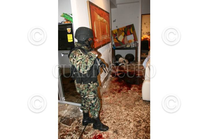 CUERNAVACA, MORELOS, 17DICIEMBRE2009.- Elementos de Infantería de la Secretaria de Marina Armada de México, se enfrentaron contra integrantes del cartel de los Beltran Leyva. En la refriega resultó muerto Arturo Beltrán Leyva, alias "El Barbas" o El jefe de jefes asi como seis de sus sicarios cuando intentaron enfrentarse contra los uniformados con armas de alto poder y granadas de fragmentación en el interior del complejo residencial Altitude en la colonia Lomas de la Selva. Alrededor de 250 militares cercaron en vecindario y permanecieron toda la madrugada y parte de la mañana. FOTO: CUARTOSCURO.COM