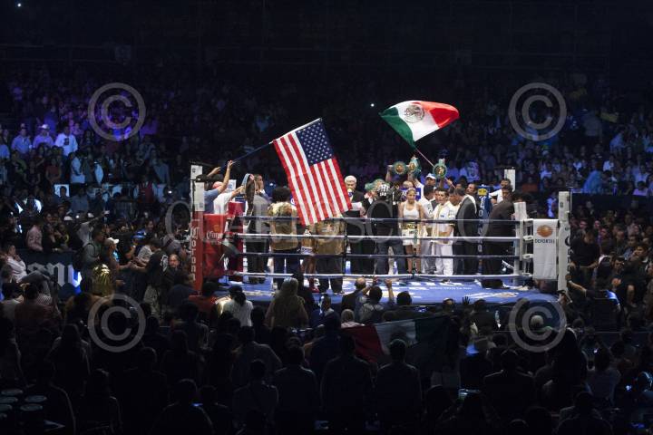 MÉXICO, D.F., 14OCTUBRE2012.- La Barbie Juárez, llega al Ring, dentro del espectáculo "Uno, dos; Música y Box", llevado a cabo anoche en el Palacio de los Deportes. En el participaron Pequeños Musical y Julión Álvarez, en los intermedios de las Peleas de Box. FOTO: JUAN PABLO ZAMORA /CUARTOSCURO.COM