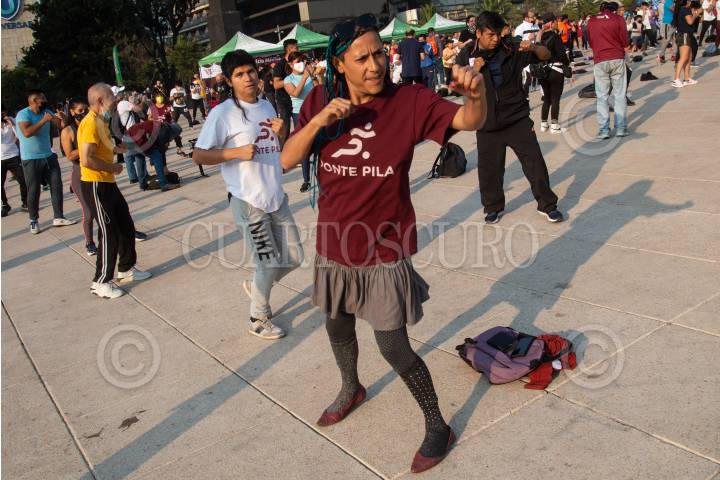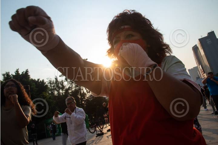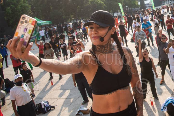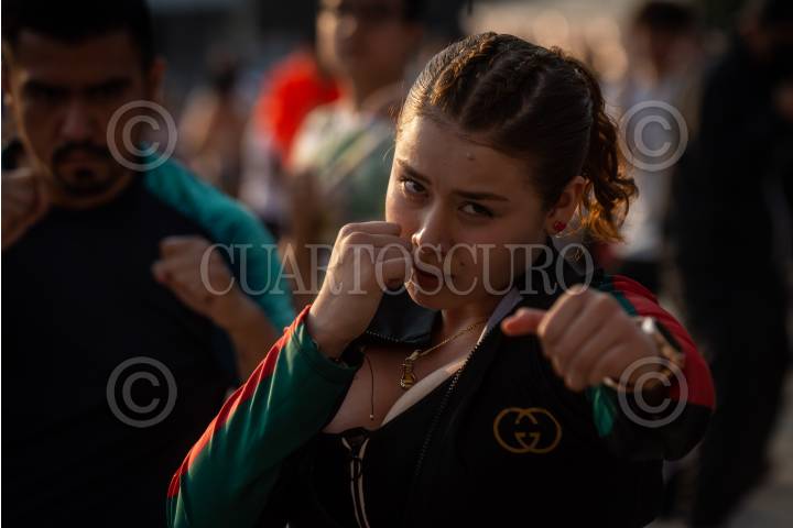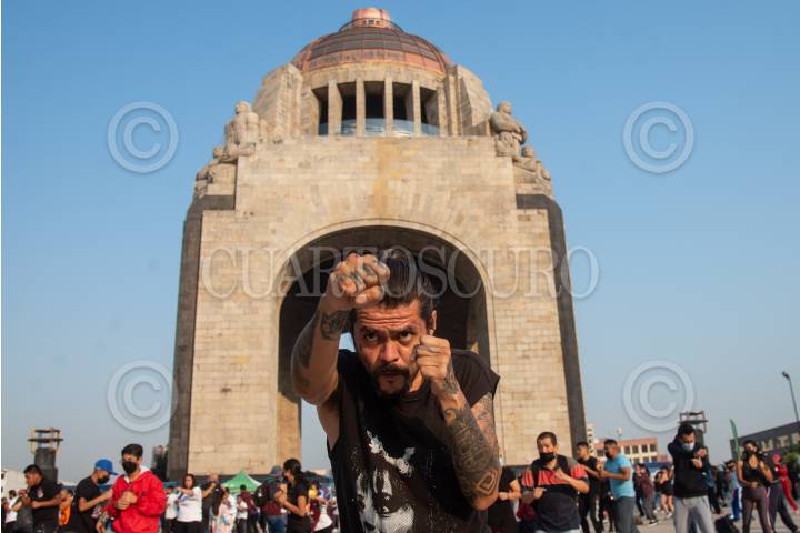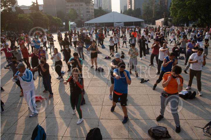 Decenas de personas se dieron cita en la explanada del monumento a la Revolución para el "Entrenamiento de Campeones del Consejo Mundial de Boxeo" que esta ocasión estuvo dirigido por Mariana "La Barbie" Juárez rumbo a la Clase Masiva de Box que se realizará el próximo 18 de junio en el zócalo capitalino.