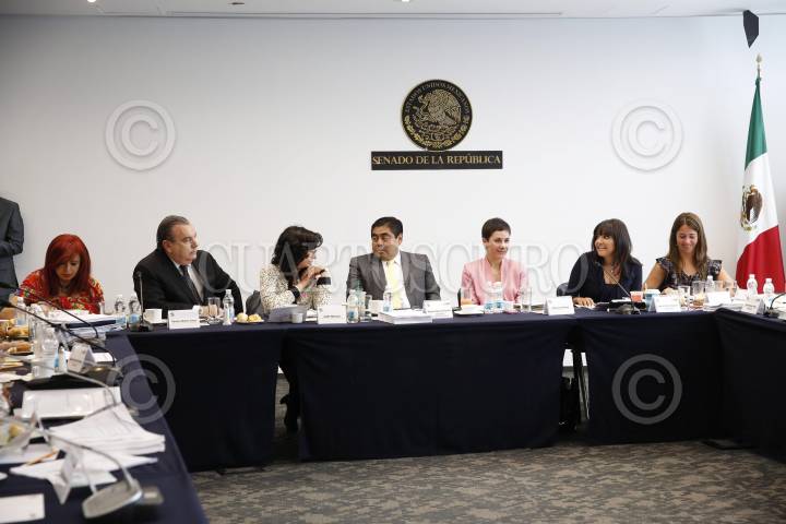 MÉXICO, D.F., 02ABRIL2013.- Los senadores del PRD, Laida Sansores, Miguel Barboza y Alejandra Barrales, se reunieron con Ramón Alberto Garza, Judith Mariscal, Clara Luz Álvarez y Salma Jalife, especialistas en telecomunicaciones. Durante el encuentro se analizó la Reforma a la Ley de Telecomunicaciones. FOTO: CUARTOSCURO.COM
