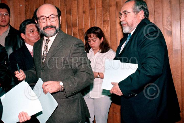 El presidente de la Comisión de Derechos Humanos del D.F., Luis de la Barreda y el Procurador Capitalino, Bernardo Bátiz se reunieron este día para clausurar las Jornadas sobre los Derechos Humanos. FOTO: Victoria Valtierra/CUARTOSCURO.COM
