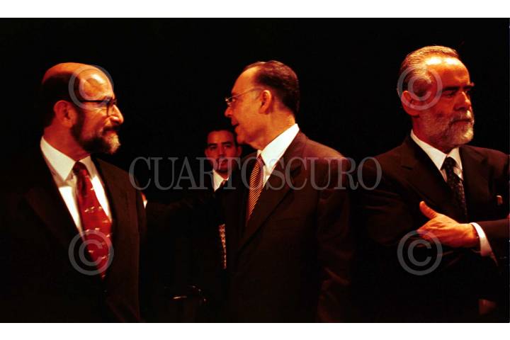 Luis de la Barreda Sol, Jorge Carpizo y Diego Fernandez de Cevallos durante la presentación del controversial libro Asesinato de un Cardenbal Ganancias de pesacadores donde se abren nuevas lineas de investigación sobre el asesinato del Cardenal Posadas. FOTO:Susana Navarrete/CUARTOSCURO.COM