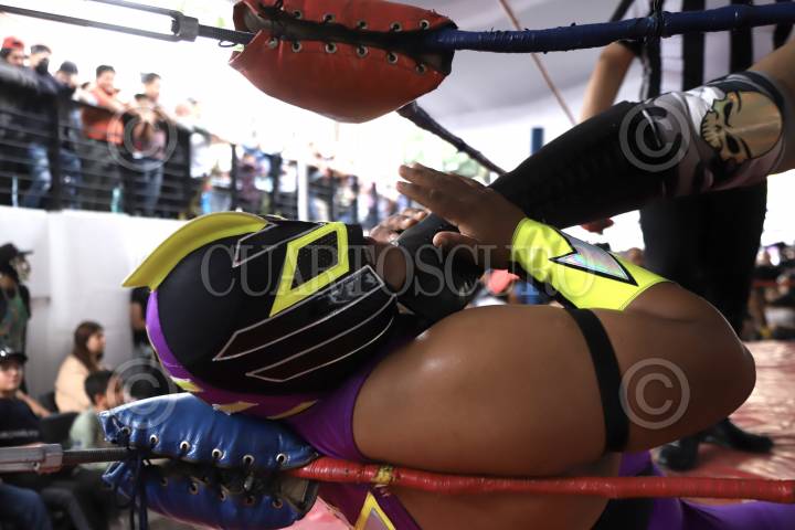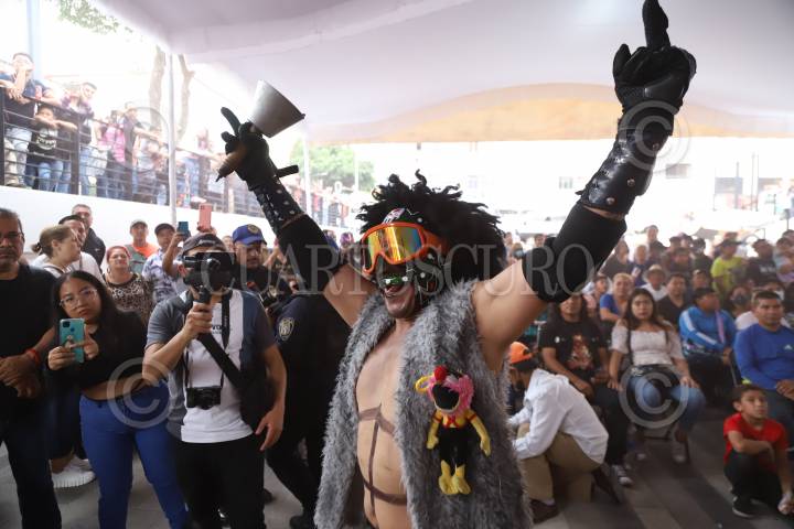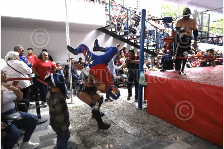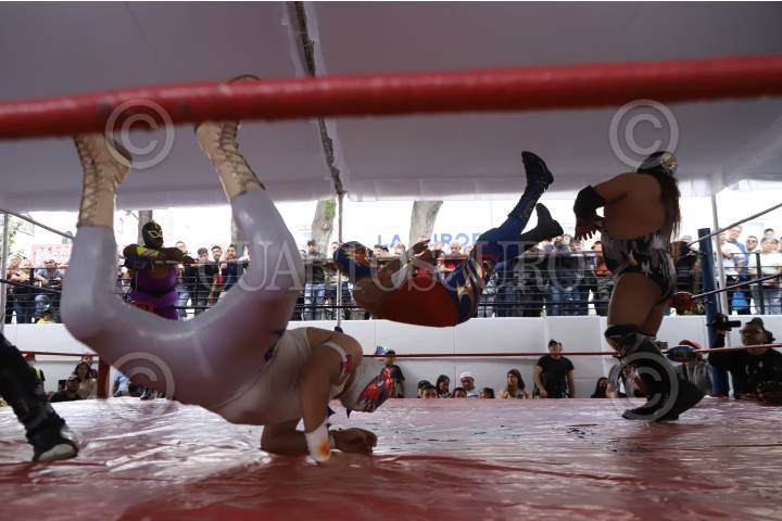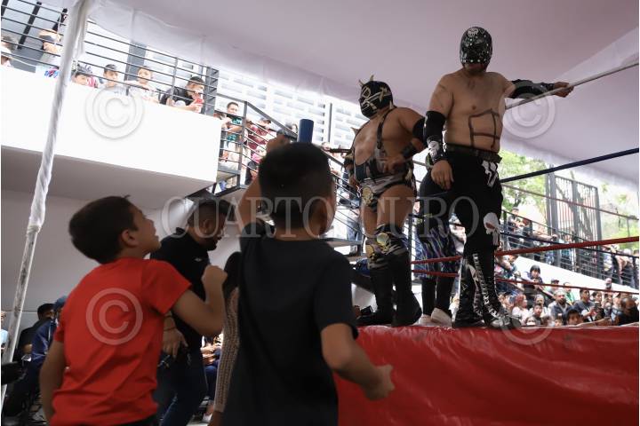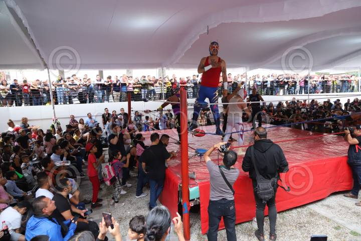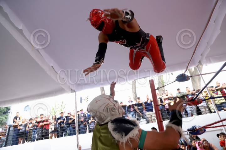 Función de lucha libre en el mercado de artesanías de San Juan en la colonia Centro.