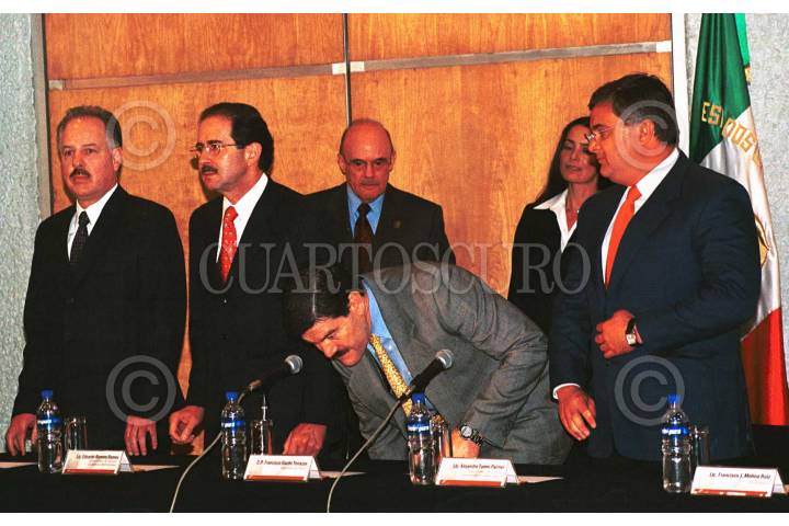 El contralor, Francisco Barrio , se despidió este día de la secretaría de la Auditoría Superior de la Federación, entregando un resultado de 344 auditorías efectuadas a la cuenta pública 2001. FOTO: Eunice Adorno/CUARTOSCURO.COM