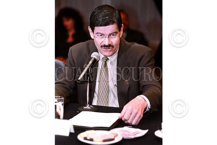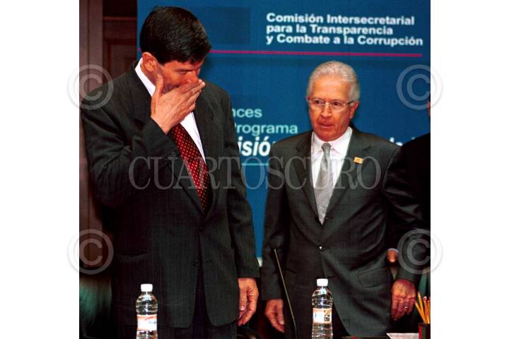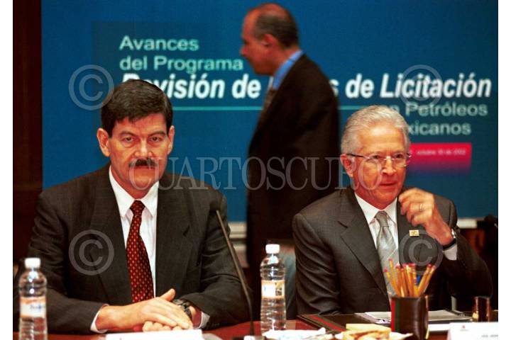 Raúl Muñoz Leos y Francisco Barrio, presidieron la presentación del programa para la transparencia 2002, en Pemex. FOTO: Victoria Valtierra/CUARTOSCURO.COM
