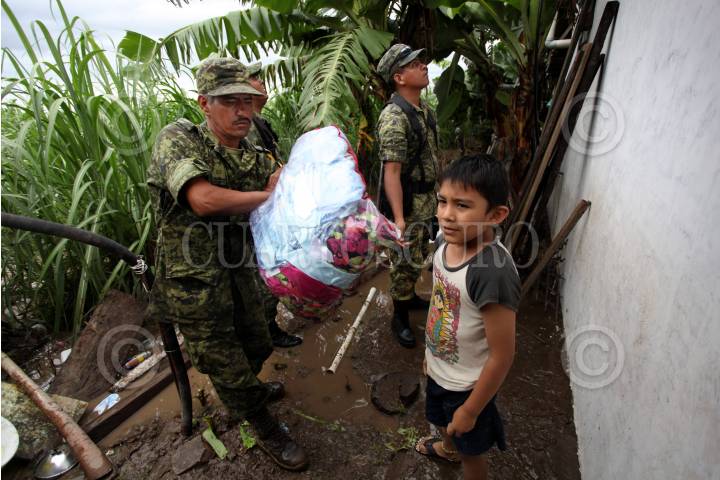 URSULO GALVÁN, VERACRUZ, 21JUNIO2013.- Cientos de habitantes se encuentran damnificados debido al desbordamiento del río Actopan lo que generó una fuerte inundación dejando incontables perdidas materiales. Al lugar arribaron elementos del Ejercito Mexicano, Secretaría de Marina y SSP quienes evacuaron a los lugareños y realizaron trabajos de limpieza tras el paso de la tormenta tropical Barry. FOTO: FÉLIX MÁRQUEZ /CUARTOSCURO.COM