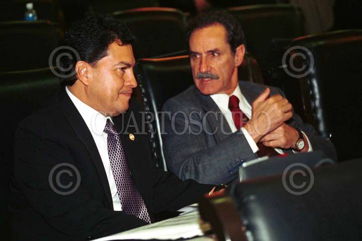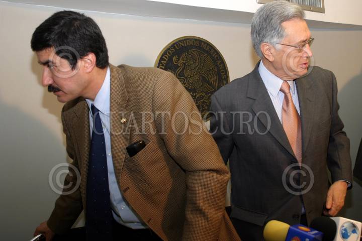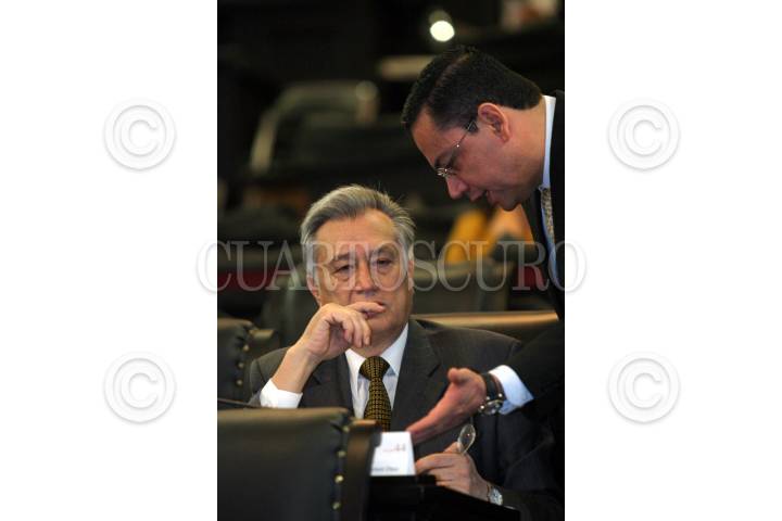 MÉXICO D.F. 25ABRIL2006.- Los senadores José Francisco Fernández de Cevallos y Manuel Bartlet, durante la sesión ordinaria de la Cámara de Senadores. FOTO: Diego Gallegos/CUARTOSCURO.COM