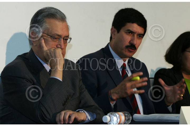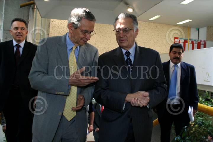 MÉXICO, D.F. 07JUNIO2007.- Manuel Bartlet y Javier Corral ofrecieron una conferencia en el marco del día mundial de la libertad de expresión en la facultad de ciencias políticas de la UNAM. FOTO: PAOLA HIDALGO/CUARTOSCURO.COM