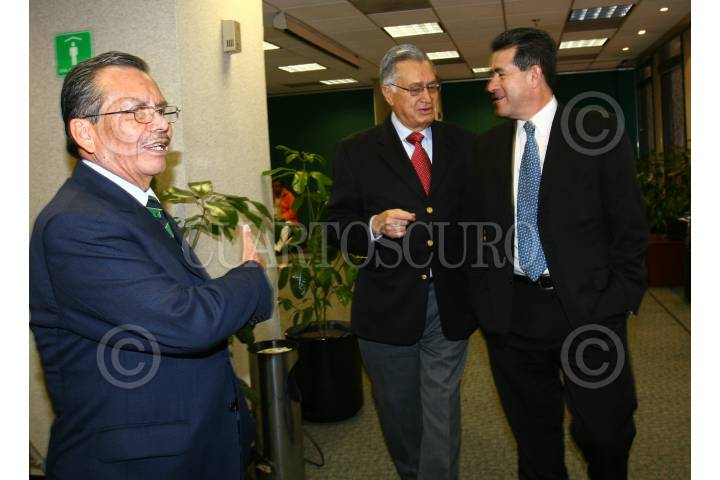 MÉXICO, D.F., 07MARZO2008.- Los políticos Heladio Ramírez, Manuel Bartlet y Diodoro Carrasco, durante la reunión del Frente Nacional de Legisladores del Sector Rural, realizada en la sede del Senado de la República. FOTO: IVÁN MENDEZ/CUARTOSCURO.COM