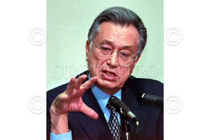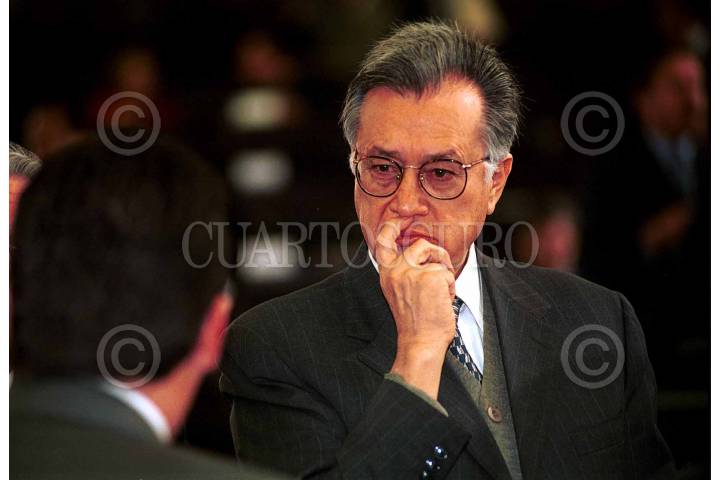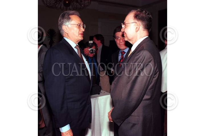 El senador Manuel Barttlet platica con el ex procurador Jorge Carpizo, durante el aniversario del programa "La entrevista", que conduce el periodista Jorge Sarmiento. FOTO:Oswaldo Ramírez/CUARTOSCURO.COM