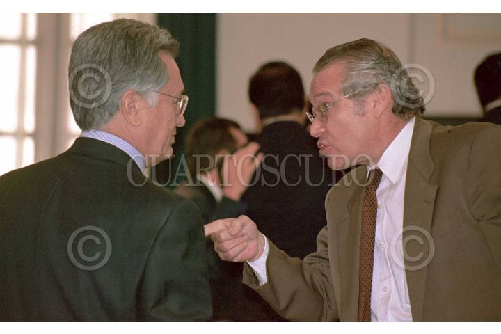 Los senadores Manuel Barttlet (PRI) y Jesus Ortega (PRD) dialogan previo a la sesión ordinaria en el Seando de la República.. FOTO: Christian Palma/CUARTOSCURO.COM