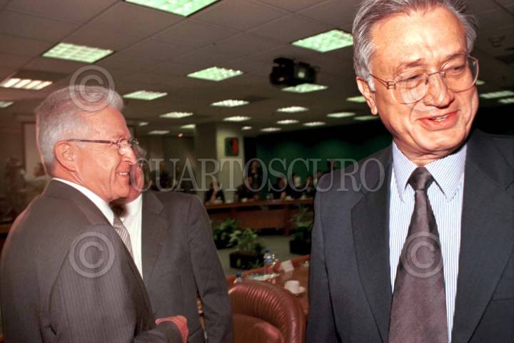 Raúl Muñoz Leos, director de PEMEX y el senador Manuel Barttlet momentos antes de comenzar la reunión de trabajo con el titular de la paraestatal. FOTO: Oswaldo Ramírez/CUARTOSCURO.COM