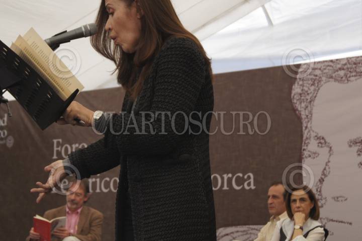 MÉXICO, D.F., 23OCTUBRE2011.- El guionista y director de cine, José Luis Ibáñez acompañado de los actores, Daniel Jiménez Cacho, Diana Bracho y María Rojo, dieron lectura al libro de José Emilio Pacheco “Batallas en el Desierto” esto como una de las actividades de la Feria Internacional del Zócalo. FOTO: PEDRO VALTIERRA/CUARTOSCURO.COM