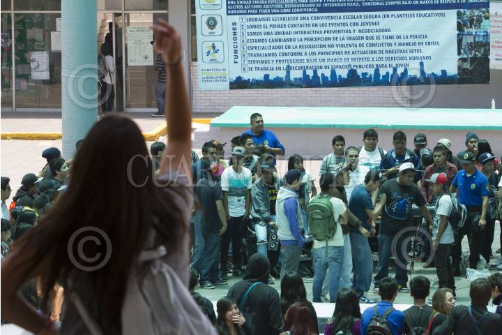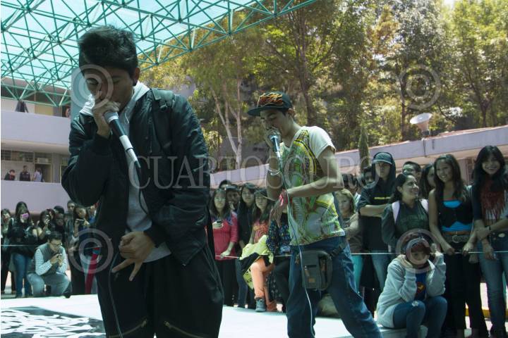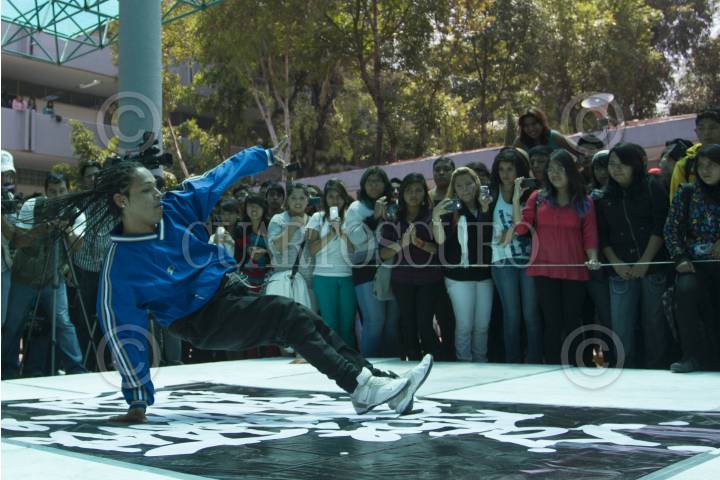 MÉXICO D.F., 16MAYO2014.- Batallas de Hip Hop, un estilo de música y de baile derivado del Funk que se asocia al Rap y Break dance, se llevo acabo en Colegio de Bachilleres 10, organizado por personal de la de la Unidad Preventiva Juvenil perteneciente a la secretaria de seguridad publica del D.F. con lo que buscan establecer una convivencia escolar segura. FOTO: GUILLERMO PEREA /CUARTOSCURO.COM