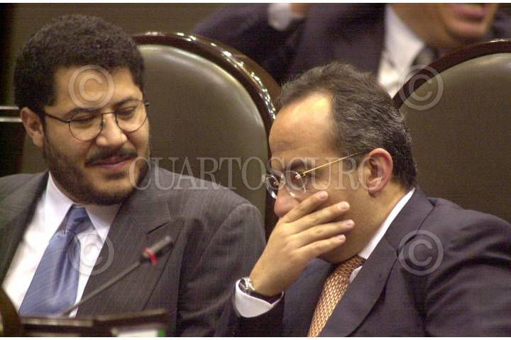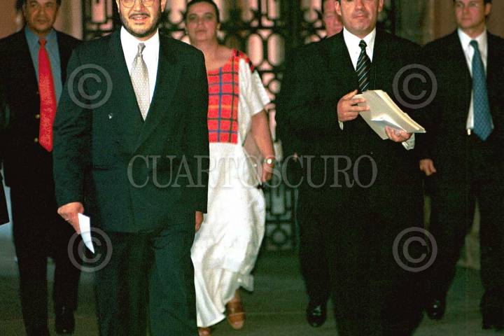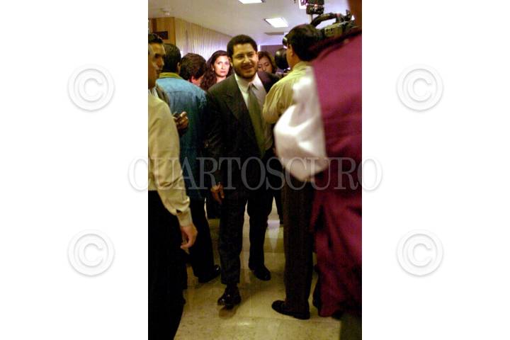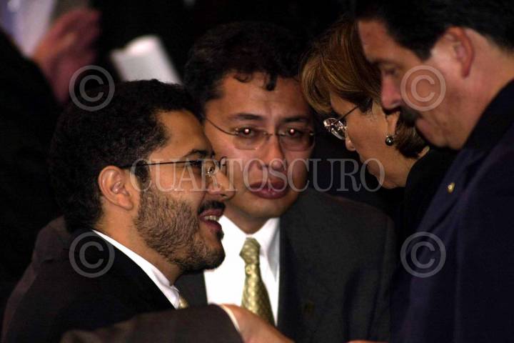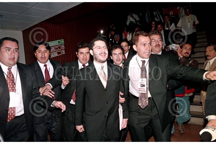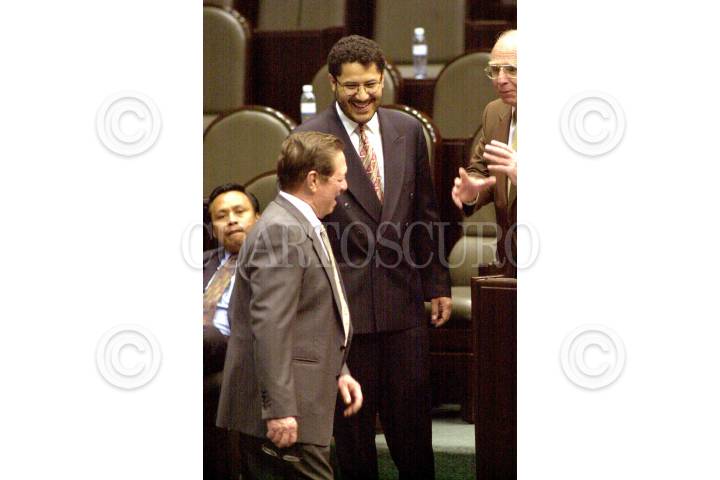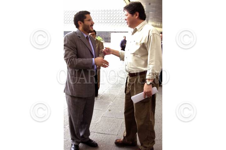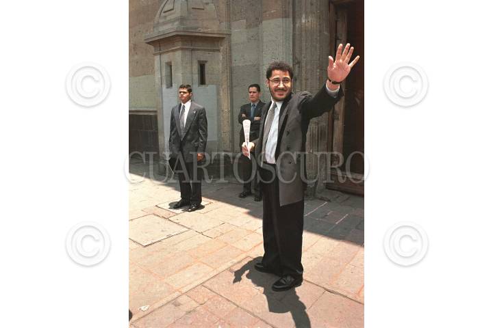 Martí Batres y Felipe Calderon salen de la reunion de coordinadores parlamentarios con el presidente Vicente Fox en Palacio Nacional. FOTO: Victoria Valtierra/CUARTOSCURO.COM