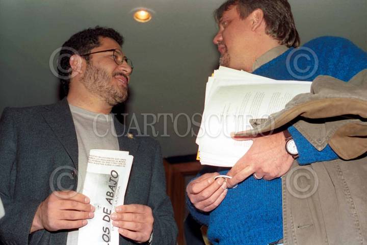 El coordinador del PRD en San Lázaro, Martí Batres, y Jaime Martínez Veloz, después de la conferencia de prensa en donde dieron a conocer una invitación al EZLN, para que asista al Congreso y forme parte de las discusiones sobre la reforma a la Ley Indígena, aprobada recientemente por la SCJN. FOTO: Juan Pablo Zamora/CUARTOSCURO.COM