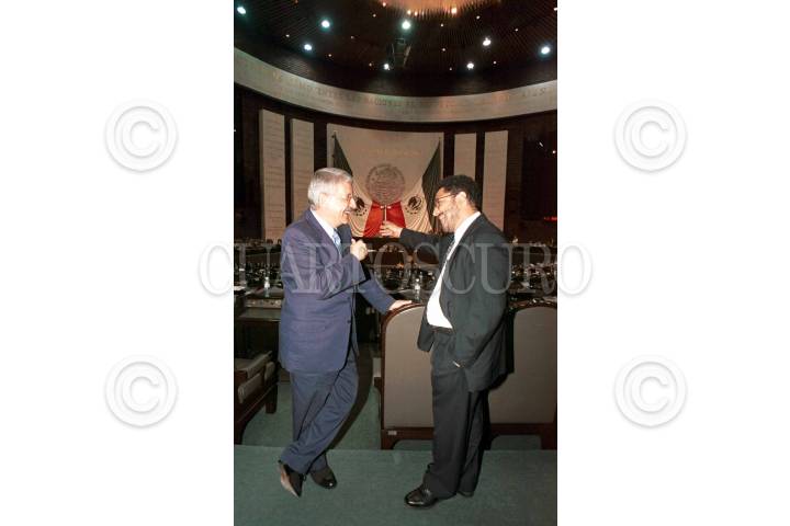 Los diputados Oscar Levin Coppel (PRI) Y Marti Batres (PRD), intercambian opiniones durante la sesión ordinaria de la Cámara de Diputados. FOTO: Oswaldo Ramírez/CUARTOSCURO.COM