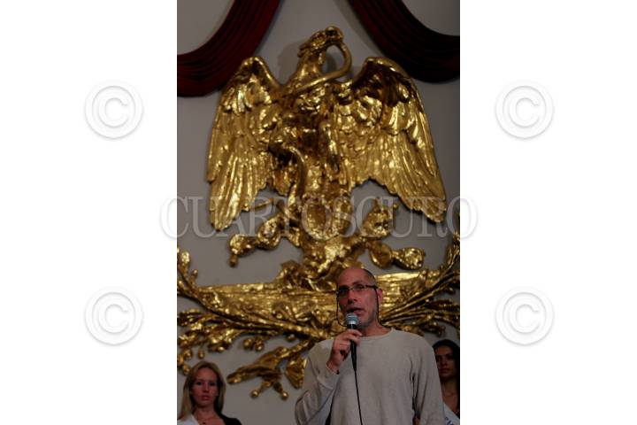MÉXICO, D.F., 20FEBRERO2009.- El escritor Guillermo Arriaga, recibió el reconocimiento a escritores cineastas mexicanos dentro del marco de la Feria del Libro que se realiza en Antiguo Palacio de Mineria. FOTO: RICARDO CASTELAN/CUARTOSCURO.COM