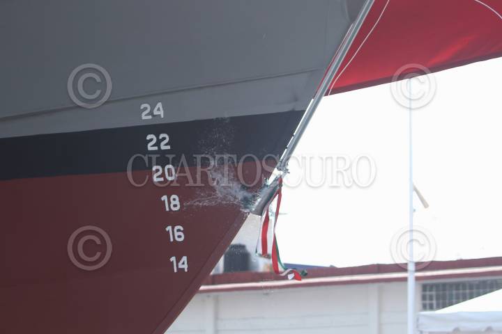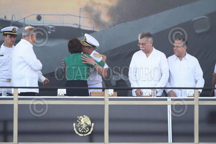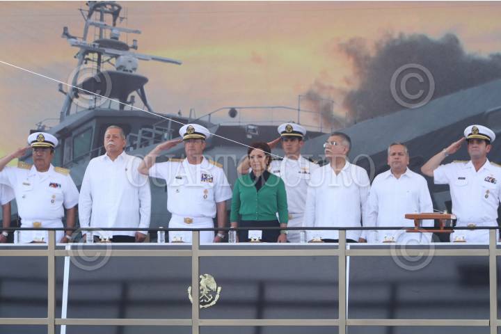 TAMPICO, TAMAULIPAS, 19MARZO2015.- La botadura es una ceremonia tradicional que representa el instante en que el buque es bañado por primera vez por la mar, quiere decir que inicia su vida, por lo tanto recibe su nombre el cual es proporcionado por su madrina. En esta ocasión la secretaria de Desarrollo Social, Rosario Robles y con el nombre de Uxmal. La patrulla costera Uxmal tendrá como misión realizar operaciones de vigilancia, búsqueda, rescate, salvamento y el combate a los ilícitos. FOTO: ISABEL MATEOS /CUARTOSCURO.COM