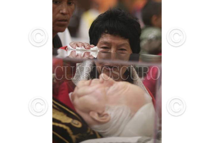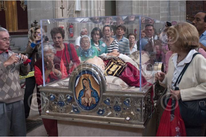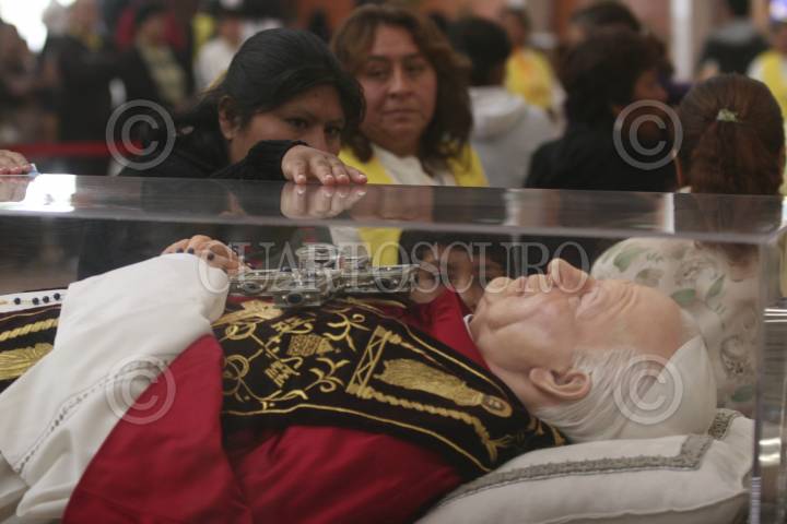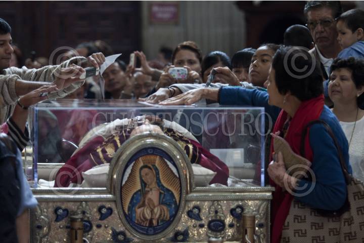 MÉXICO, D.F., 25AGOSTO2011.- Cientos de creyentes católicos acuden a observar las reliquias del Beato Juan Pablo II que arribaron esta mañana a la Basílica de Guadalupe, las cuales estarán a la vista de los creyentes hasta el domingo 28 de agosto, después iniciara un recorrido por varias partes del país. FOTO: RODOLFO ANGULO/CUARTOSCURO.COM