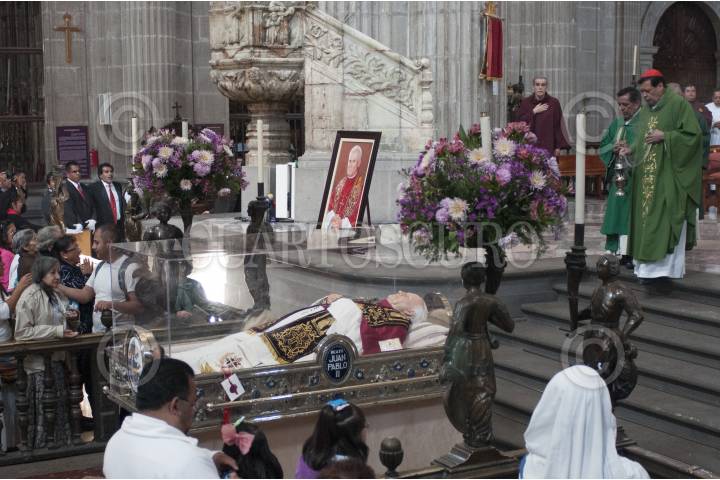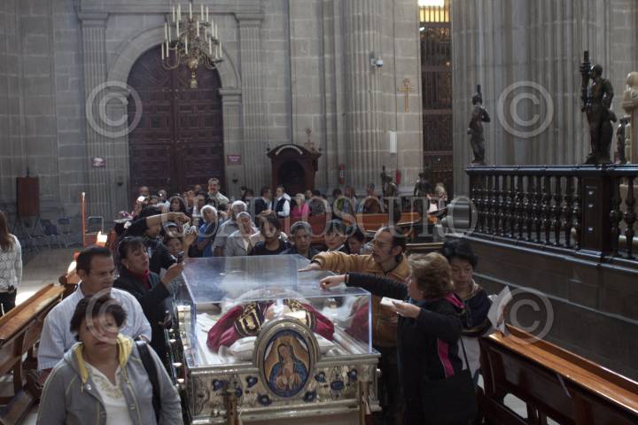 MÉXICO, D.F., 09SEPTIEMBRE2011.- Las puertas de la Catedral Metropolitana fueron abiertas el día de hoy desde las 7hrs para exhibir las reliquias del beato, Juan Pablo II y permanecerán abiertas hasta las 23hrs, hora en la que partiran a la diócesis de Ecatepec encabezada por el Cardenal Onésimo Cepeda en su viaje por toda la República Mexicana. FOTO: MOISÉS PABLO/CUARTOSCURO.COM