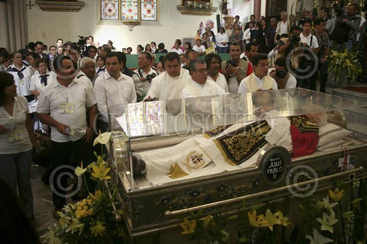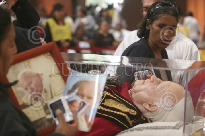 VALLE DE CHALCO, ESTADO DE MÉXICO, 12SEPTIEMBRE2011.- Las reliquias de Juan Pablo II, llegaron la mañana de hoy a la catedral de San Juan Diego donde miles de feligreses asistieron a visitar las reliquias de beato, esto como parte de la peregrinación que mantiene por diversos municipios de la república mexicana. FOTO: SAÚL LÓPEZ/CUARTOSCURO.COM