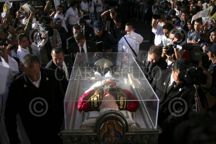 MÉXICO, D.F., 09FEBRERO2014.- Las reliquias del beato Juan Pablo II fueron trasladadas desde la Basílica de Guadalupe a la Catedral metropolitana. Las reliquias consisten en un centímetro de piel de Juan Pablo II. FOTO: IVÁN STEPHENS /CUARTOSCURO.COM