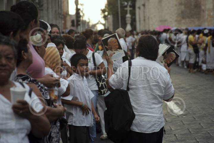 MÉRIDA, YUCATÁN, 01OCTUBRE2011.- Más de 10, 000 fieles le dieron un cálido y cariñoso recibimiento a la reliquias del papa Juan Pablo II que llegaron esta mañana a la catedral. Los objetos del beato fueron acogidos por el arzobispo monseñor Emilio Carlos Berlie Belaunzarán. FOTO: FRANCISCO BALDERAS/CUARTOSCURO.COM