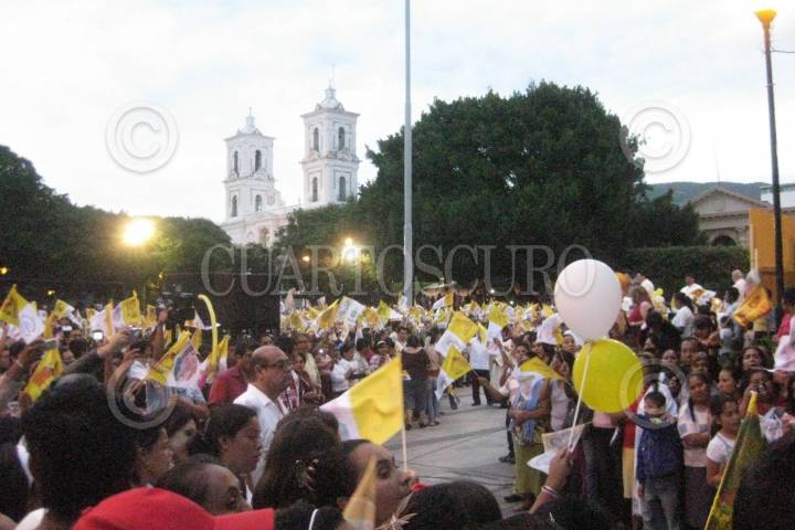 CHILPANCINGO, GUERRERO, 15OCTUBRE2011.- Aspectos del recorrido que realizaron por las principales calles y avenidas de la ciudad capital este viernes por la tarde, las reliquias del beato Juan Pablo II, donde miles de fieles lo acompañaron al zocalo capitalino. FOTO: OSCAR ALVARADO/CUARTOSCURO.COM