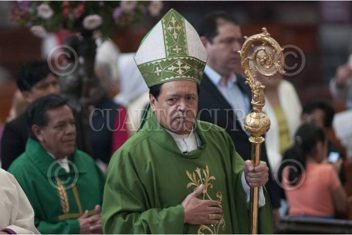 MÉXICO, D.F., 09FEBRERO2014.- Norberto Rivera Carrera, cardenal de México, ofició la misa dominical en la catedral Metropolitana donde recibió las reliquias del beato Juan Pablo II que fueron trasladadas desde la Basílica de Guadalupe a la Catedrla metropolitana. Las reliquias consisten en un centímetro de piel. FOTO: IVÁN STEPHENS /CUARTOSCURO.COM