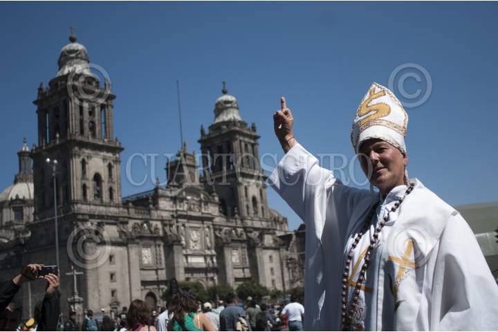 MÉXICO, D.F., 09FEBRERO2014.- Julia Mercedes Klug, se manifestó contra la llegada de las reliquias del beato Juan Pablo II, frente a la catedrlametropolitana por considerar que fue un papa que en vida protegió a padres y curas que abusaron sexualmente de niños como el caso de Marcial Maciel. FOTO: IVÁN STEPHENS /CUARTOSCURO.COM