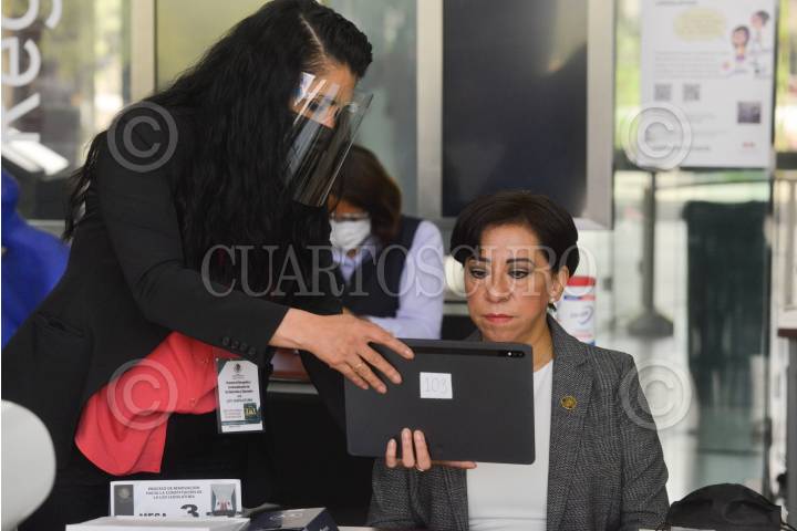 Beatriz Rojas, diputada electa de Morena, durante el proceso de credencialización para la LXV Legislatura del Congreso de la Unión.