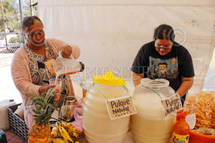 MEXQUITIC DE CARMONA, SAN LUIS POTOSÍ, 10ENERO2025.- Se llevo a cabo la Fiesta del Pulque y Mezcal a la cual acudieron los productores de la región, procedentes de varias comunidades que se dedican a producir el llamado “néctar de los dioses” de manera artesanal. Los visitantes también pudieron disfrutar de danzas, gastronomía y artesanía del municipio. FOTO: MARCELO PALACIOS/CUARTOSCURO.COM